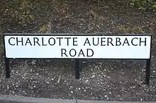 There is a street named Charlotte-Auerbach-Straße in Stuhr-Brinkum.[17] One of the streets in the Kings Buildings university complex in Edinburgh is named Charlotte Auerbach Road in her honour.[18]