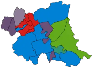 Charnwood Borough Council elections are held every four years. Charnwood Borough Council is the local authority for the non-metropolitan district of Charnwood in Leicestershire, England. Since the last boundary changes in 2023 the council has comprised 52 councillors, representing 24 wards, with each ward electing one, two or three councillors.[1]