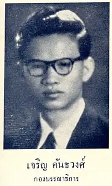 - ↑ "นาย เจริญ คันธวงศ์". khontai.com (in Thai). Archived from the original on 5 November 2012.
