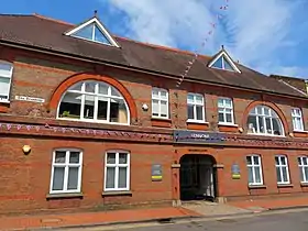 The council's offices also moved a number of times. In the early years, the clerk to the council was a local solicitor with his own offices. The rest of the council's staff were initially based at a house at the corner of Blucher Street and Bellingdon Road, but had to vacate there hurriedly in May 1898 when the landlord started demolishing part of the building. At short notice the council managed to move its offices to a small cemetery lodge house at 174A Berkhampstead Road, which then served as the council's offices from 1898 to 1927.[15] From 1927 to 1946 the council's offices were at 33 High Street.[16][17][18]