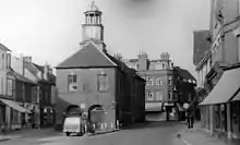 Chesham Urban District Council initially met at the Mechanics' Institute, as the old local board had done, but after a few months decided that the larger council needed a bigger meeting room.[10] From 1895 to 1909 the council met at the Chess Vale House School, at 31 High Street.[11] In 1909 the council decided to move its meeting place to the Town Hall, a privately-owned building of 1856 with a hall above an arcaded market below, which stood in the middle of the Market Square. Town Hall served as the council's meeting place until 1946.[12][13][14]