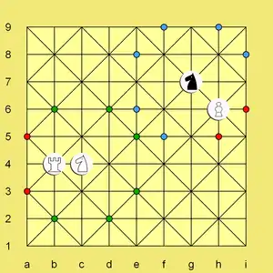 - ↑ This could be described as the "inverse" of the move of a horse in xiangqi.