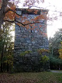 Unlike Great Blue Hill Observation Tower, a similar tower at the opposite end of the reservation, Chickatawbut tower is not open to the public. The tower was built by the Civilian Conservation Corps in the 1930s.[2] It is named for Chickatawbut, who was a 17th-century sachem of the Massachusett Indian tribe.