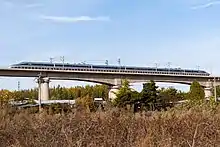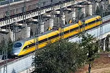The CRH380BJ-0301 (initially CIT400B) is a 380 km/h (236 mph) CIT train, co-manufactured by the CNR Tangshan and CNR Changchun factories.[8] The design is based on CNR's CRH380CL trainset, with a formation of 6M2T, a designed top speed of 500 km/h (311 mph), and a top operating speed of 400 km/h (249 mph).
