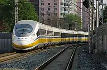 CRH2C-2061 (formerly CRH2-061C) is the first 300 km/h (186 mph) high speed trainset manufactured by CSR Sifang. The trainset rolled off the production line on 22 December 22, 2007[4] and was named CRH2-300, as the prototype of CRH2C. During a test on 22 April 2008, CRH2-061C reached a top speed of over 370 km/h (230 mph) on Beijing-Tianjin high-speed rail[5] and on 11 December 2009 reached an improved top speed of 394.2 km/h (245 mph) on the Zhengzhou-Xi'an high-speed railway line.[6] It now serves as a 350 km/h inspection train, equipped with track inspection, catenary examination, and signal inspection devices.