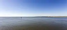The marked channel through the inlet to Chincoteague Channel is subject to frequent change; the buoys are shifted with changing conditions. Breakers are evident on either side of the channel. A sunken wreck is about 0.4 mile southwest of Fishing Point in 37°51’54" N., 75°24’04" W.