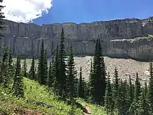 The Chinese Wall is a large escarpment located in the Bob Marshall Wilderness Area in Montana. While definitions of the length of the wall vary (to up to forty miles) the part of the wall that is most well defined and continuous is about twelve miles long.[1] The Chinese Wall makes up part of the Continental Divide, meaning water on the different sides of the wall flow into either the Atlantic Ocean (through the Gulf of Mexico) or the Pacific Ocean.