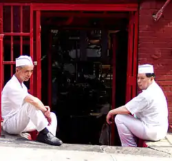Cooks at a Manhattan Chinatown restaurant taking a break