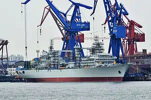 Type 903 integrated supply ship (NATO called Fuchi-class supply ship) is a new large-scale integrated supply ship of the Chinese People's Liberation Army Navy, designed by Zhang Wende. The later improved model is called 903A. The difference with 903 is that the displacement has increased from 20,530 tons to 23,000 tons.[1]