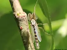Chironomus tentans is a species in the family Chironomidae ("midges"), in the order Diptera ("flies"). Like several other species of Chironomidae, C. tentans can be cultivated in laboratories, where their quick lifecycle is a benefit. Their larvae make good candidates for toxicity tests.[1][2]