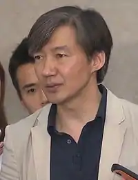 Cho Kuk (Korean: 조국, born 6 April 1965[1]) is a South Korean jurist and politician. He was the Senior Secretary to the President for Civil Affairs from 2017 to 2019 in the Moon Jae-in Cabinet. On 9 September 2019, President Moon Jae-in appointed Cho as Minister of Justice, replacing the incumbent Park Sang-ki.