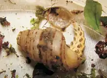 | firefly larva Alecton discoidalis is feeding on Chondropoma pictum | |