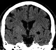 Coronal CT of the brain showing a choroidal fissure cyst