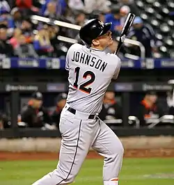 On February 13, 2017, Johnson signed a minor league contract with the Baltimore Orioles, that included an invitation to major league spring training.[17] He was released on March 27[18] but re-signed a couple of days later.[19] Johnson played in 69 games split between the Triple–A Norfolk Tides and the Low–A Aberdeen IronBirds, hitting .292/.330/.491 with 11 home runs and 37 RBI. He elected free agency following the season on November 6.[20]