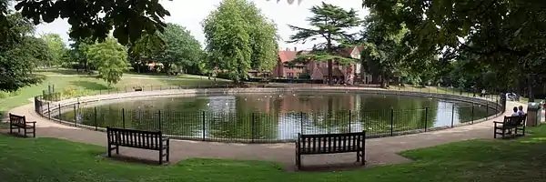 Christchurch Park is a historical area of rolling lawns, wooded areas, and delicately created arboreta close to the town centre in Ipswich, Suffolk. The park hosts various facilities such as a children's play area, tennis courts, table tennis, bowling greens and outdoor gym equipment. The distinguished Tudor house, Christchurch Mansion, is located at the parks southern entrance and holds a public museum and art gallery. The park belonged to various noble families as private land throughout its history but was purchased by the Ipswich Borough Council in 1894 and opened as the town's first public park in 1895.[1]