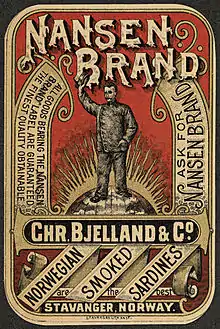 The company became most famous for its sardines on tins featuring the images of notable Norwegians including explorer, Fridtjof Nansen. Particularly successful was the King Oscar brand for which Christian Bjelland received royal permission to use the image of Oscar II of Sweden . The King Oscar brand became well known worldwide and is still popular in the U.S.A. as well as Australia.[4][5]