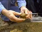 One paleontologist from St. Louis currently working at the dig site said it was "pretty much a miracle" that dinosaur bones were found in Missouri, because the state's soft soil has resulted in the deterioration of most prehistoric remains.[21][22] However, some of the remains found have been damaged by erosion and other processes.[23] While much of Missouri lies upon rocks from the Paleozoic or Precambrian eras, the Chronister site is situated over Mesozoic rock.[24] Stewart, who found the bones after being assigned to study the origins of clay in the southeastern portion of the Ozarks, was able to conclude that part of the region lies upon deposits from the Upper Cretaceous period, although much of the sediment from that time period has eroded away.[25]