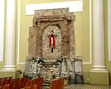 Following the collapse of the Soviet Union, the Catholic Church in Russia began to operate once more in the early 1990s. In February 1992, city authorities decided to return the building to the Catholic Church. That same year, the church began rebuilding. According to the church, after being closed by the Soviets in 1938, a 20-year-old woman went into the ransacked temple and retrieved the crucifix out of the sanctuary. When the building was returned to the Catholic Church, she returned the crucifix.[2] The first stage of restoration was finished by October 1992, with a temporary altar in place for worship. In October 1998 a Chapel of the Annunciation was opened. The main altar was completed and blessed in 2000. The restoration of most of the church was completed in 2003, and the central gates were opened.[6] Restoration of the interior of the church is ongoing.[7]