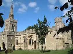 The Parish Church of Saint Lawrence, Wymington is a Grade I listed church in Wymington, Bedfordshire, England. It became a listed building on 13 July 1964.[1] The church was built in 1377 with funds bequeathed by John Curteys, the mayor of the wool staple at Calais, though there are records of a previous church on the site dating back to at least 1235. The church is noted for its 15th century doom painting depicting Christ in glory with scenes of the judgement as well as its funerary brasses and monuments.[2]