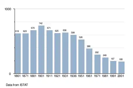 - ↑ "Superficie di Comuni Province e Regioni italiane al 9 ottobre 2011". Italian National Institute of Statistics. Retrieved 16 March 2019.