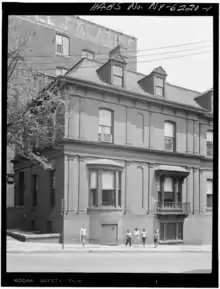 The City Club, known also as the William Culbert House, is a historic ruin at the corner of Grand and 2nd Streets in Newburgh, New York. Designed in the early 1850s by Calvert Vaux and Andrew Jackson Downing, the house survived Urban Renewal efforts but succumbed to fire in 1981. Plans have been made since its destruction to reconstruct the interior, a project often paired with restoration of the nearby Dutch Reformed Church, but none have ever been executed. The house appears in Vaux's most celebrated work, Villas and Cottages (1857) as Design No. 22. It is one of the earliest Second Empire houses in the United States, designed just after Detlef Lienau's now lost Hart M. Shiff House (1850) and the earlier Edward Deacon House in Boston's South End.[1] For a brief time in the late 1970s, the former City Club housed the offices of restorer Brian Thompson. Due to its centralized location, it has become a symbol of the restoration movement in Newburgh, also representing the city's decay.