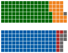 | Seven-party coalition total | 352,095 | 48.58 | 44 | 348,606 | 47.65 | 61 | 105 | |