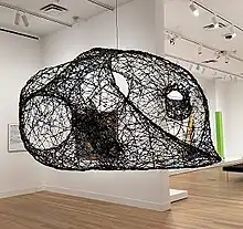 Rather than sculpture, she preferred the use of the word structure to refer to her work. She applied the term to her paintings and prints as well.[16] A critic compared Falkenstein's work of the 1950s to "a Jackson Pollock in three dimensions".[17] Some of her work has a structure which appears as if it could grow, infinitely expanding, similar to the way Pollock's paintings may appear as if they could continue beyond the canvas.[18]
