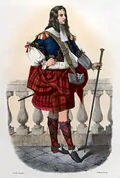 Under Alexander Robertson, 12th chief, the clan is said to have supported Montrose in all of his battles during the Scottish Civil War.[7] During this time, the main Robertson castle at Invervack, near the present Clan museum, was burned by Cromwell's forces, and many family records were lost. The Clan Robertson played a major part in the fighting at the Battle of Inverlochy (1645) in support of the royalist, James Graham, 1st Marquis of Montrose, where they put the king's enemies to flight.[8] Alexander Robertson of Lude fought for Charles I of Scotland at the Battle of Tippermuir and as a result Lude was burned by Cromwell's forces in retaliation.[8]