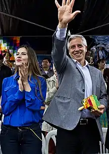 - ↑ "Claudia Fernández la novia del Vice Presidente de Bolivia" [Claudia Fernández the Girlfriend of the Vice President of Bolivia]. Televisión en Bolivia (in Spanish). 23 November 2011. Retrieved 21 October 2019.