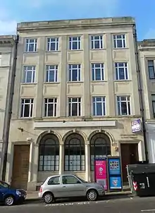 This is next to Marlborough House and Steine House on the west side of Old Steine, and is taller and set further forward than both. It was built in the early 19th century,[14] but Clayton & Black's work altered its appearance extensively. More changes were made in the early 20th century. The building now has "a more Regency character" than it did when built.[14][80]