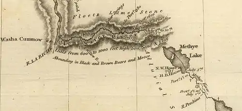 During European exploration and the fur trade of the 18th century, the lower Clearwater River was part of an important canoe route between Hudson Bay and Montreal in the east, and the District of Athabasca in the west. The rough Precambrian upper portion of the Clearwater River was a barrier to the traders until 1778, when explorer Peter Pond crossed the Methye Portage to bypass it. Methye Portage extended between Lac La Loche and the Clearwater River, forming a 19-kilometre (12 mi) overland link on the route from Churchill, Manitoba to Athabasca, Alberta. For almost 40 years, this was the only overland connection for the fur trade in the region, and it continued in use for most of the 19th century.[5]