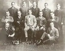 Clem's father was prominent in the Methodist Church and sent Clem to be educated at Prince Alfred College, the local Methodist school.[1][4] "Inter-collegiate" matches, the annual fixtures against rivals St Peter's College, were fiercely contested. Hill played his first inter-collegiate match at the age of 13, keeping wicket and batting at number ten.[1] His hands suffered from keeping wicket to the fast bowling of future Test team-mate Ernie Jones, leading to a decision to concentrate on batting.[5] At 16, he scored 360 in the inter-collegiate match, a schoolboy record, bettering the mark made earlier by Joe Darling.[1] Despite this, a school sportsmaster threatened to leave him out of the School XI (cricket team) if he continued to play the risky hook shot.[5]