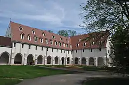 The community's headquarters were, historically, at their purpose-built Victorian convent on Hatch Lane, Clewer, Windsor, built from 1853.[3] This very large and imposing structure, by Henry Woodyer,[4] is a local landmark, and includes a highly decorated chapel, and extensive accommodation for sisters, guests, and the female destitute persons to whom the community traditionally gave shelter.[5] William Henry Hutchings was Warden from 1865 to 1884 when he became rector of Pickering, Yorkshire.[6] He was succeeded by Thomas Thellusson Carter.[7] Following a sharp decrease in membership, the community found itself using only a tiny part of the buildings, and in 2001 relocated to Oxfordshire. The original convent has since been converted into flats.