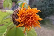 Cnicothamnus is a genus of flowering plants in the family Asteraceae.[2][3][4] Its species are small trees which can reach 5m in height, bearing alternate ovate and dentate leaves with a whitish pubescence. The inflorescences, borne at branch tips, are bell-shaped capitula of a bright orange colour, and usually appear during local winter. Their fruit (which can be described as a cypsela) bears a rough plume.[5]