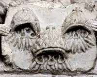 A number of explanations of the symbolism of the Drapers' arms have been postulated.[6] The Company's patron is the Virgin Mary, and each of the grants of arms is clear that this is to whom the triple crowns refer. Mary was deemed to be an empress and the symbol for an emperor/empress is a triple crown. An image of The Virgin Mary wearing the same tiara is in the margin of the Letters Patent granting the Arms to the Company. The Drapers were originally a religious fraternity associated with the Church of St Mary Bethlehem Church, Bishopsgate.[7]