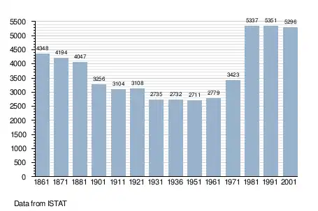 - ↑ "Popolazione Residente al 1° Gennaio 2018". Italian National Institute of Statistics. Retrieved 16 March 2019.