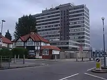 By the end of the 19th century, cheap land prices made Colindale attractive to developers. Colindale Hospital was opened in 1898 as an asylum for the long-term sick of central London, and in 1907 The Government Lymph Establishment for making vaccines was built. By 1996 the majority of the hospital was closed, and by 2009 was mostly derelict.[5] The site is now a housing development, consisting primarily of apartment blocks. Only the Grade II Listed administration buildings at the centre of the hospital site remain.[6]
