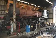 Soon, the boiler, frame and tender were separately shipped to PARHA's location in Snoqualmie, Washington, where restoration work to get No. 7 running again was expected to quickly begin.[1][4] For reasons unknown, the PARHA's plans to restore and run No. 7 had fallen through, and the Mallet instead sat, disassembled in PARHA's Niblock Yard for the next few decades with little activity done on it.[4] In 1978, Morrow passed away, and No. 7 fell under ownership of an estate company, who in turn sold it to a California-based logger, Rohan Coombs.[1][4][6][7] Coombs kept No. 7 in Snoqualmie, while he explored options for the Mallet's future.[4] In 1996, Coombs had the pieces relocated to the Mount Rainier Scenic Railroad in Mineral, Washington.[1][4] The plan was to have the locomotive restored and eventually ran on Mount Rainier's trackage, but this also fell through.[1]