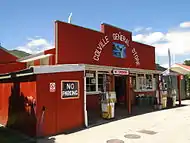 Colville township grew following the construction of a general store with a motor garage alongside.[5] This was built by Richard (Dick) Goudie, a local man whose grandparents had settled in Cabbage Bay. Dick Goudie later ran a taxi service from the town, being the first to drive a motor vehicle across the new bridge at Papa Aroha which opened up the northern peninsula from Coromandel. Fossicking for semi-precious stones such as carnelian and for kauri gum are popular activities among tourists visiting the town.[6]