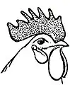 • the single comb, extending in a single line from the top of the base of the beak to the back of the head. It consists of a solid vertical part with a series of points or serrations; the size, shape and number of these and the overall shape of the comb are all variable, depending on the breed.[2]:502