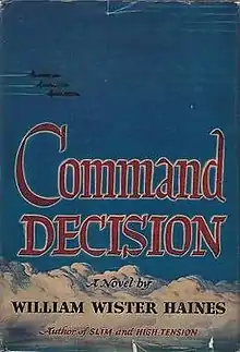 Command Decision is a war novel by William Wister Haines,[1] serialized in 1946–47 in four parts in The Atlantic Monthly.[2] It was published in book form in 1947. It was developed from the unproduced play of the same title in order to provide a market for a Broadway production that followed in 1947, then adapted as a film in 1948. The novel depicts the stresses and emotional toll on the commander of a United States Army Air Forces general, K.C. "Casey" Dennis, in implementing a costly series of attacks by B-17 Flying Fortresses against German industries manufacturing jet fighters.
