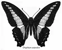 - ↑ Malcolm G. P. Page & Colin G. Treadaway , 2013 Speciation in Graphium sarpedon (Linnaeus) and allies (Lepidoptera: Rhopalocera: Papilionidae) Stuttgarter Beiträge zur Naturkunde A, Neue Serie 6: 223–246; Stuttgart. pdf Archived 2020-02-07 at the Wayback Machine .