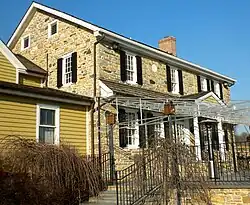 Significant because of its role in agricultural innovation, the Georgian Quaker stone farmhouse was built circa 1702. John Beale Bordley purchased the property in 1792 to establish one of the colonies' first model farms to experiment with crop rotation, soil fertility, and farm machinery.[2][3] He co-founded the Philadelphia Society for Promoting Agriculture and authored popular books advising farmers on sustainable agriculture.[4][5] A Pennsylvania state historical marker commemorating Bordley was placed near the farm in 1953.[2][5]