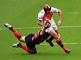 - The player with the ball is tackled.