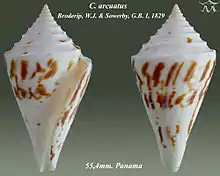 - 1 2 Bouchet, P. (2015). Conasprella arcuata (Broderip & G. B. Sowerby I, 1829). Accessed through: World Register of Marine Species at http://www.marinespecies.org/aphia.php?p=taxdetails&id=835890 on 2015-03-19