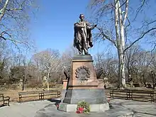 Moore's bust helped establish a definite musical theme to the sculpture garden,[7] and later busts are of classical composers, sponsored by other European American cultural groups.[13][7] The later busts include three donated by the United German Singers of Brooklyn representing their wins in national Sängerfests: Ludwig van Beethoven (1894, one of a series by Bearer),[26] Wolfgang Amadeus Mozart (1897),[27] and Carl Maria von Weber (1909).[28] And the last one to be added was donated by the Norwegian Societies of Brooklyn, Edvard Grieg (1914).[29]