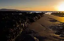 Coney Island or Inishmulclohy (Irish: Inis Uí Mhaolchluiche),[2] is an island between the Rosses Point and Coolera peninsulas in Sligo Bay, County Sligo, Ireland. It is one of several islands of the same name off the coast of Ireland. It is an island of approximately 400 acres and is named after the vast quantity of rabbits which can be spotted on the island at any time, the Irish for rabbit being coinín.[3] (Coney (/ˈkoʊni/, historically /ˈkʌni/) was an English word for a rabbit or rabbit hair, with both words originally deriving from the Latin cuniculus, meaning "rabbit").