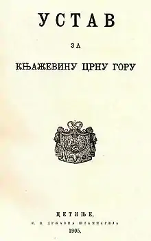 The Constitution also officially recognises the current flag and coat of arms as legitimate state symbols, as well as the current Montenegrin anthem.[1][2]