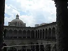 The Convent of Nuestra Señora de La Merced was a Roman Catholic colonial religious complex in present-day Historic center of Mexico City, that was destroyed to give more space to future buildings. The cloister is all that is left of a monastery complex built in the late 16th and early 17th century by the Mercedarian order.[1] It is located on Uruguay and Talavera Streets in the historic downtown of Mexico City.[2] The complex lent its name to the area around it, La Merced, which in turn, inspired the name of the metro station and the well-known neighborhood Market.[3]