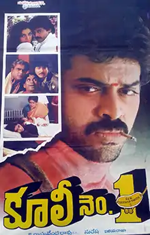 Coolie No.1 is a 1991 Indian Telugu-language romantic action film produced by D. Suresh Babu under the Suresh Productions banner and directed by K. Raghavendra Rao. It starred Venkatesh and Tabu, the latter making her first movie as an actress. Rao Gopal Rao, Sharada, Kota Srinivasa Rao, Paruchuri Venkateswara Rao, Mohan Babu, and Brahmanandam playing supporting roles. The music was composed by Ilaiyaraaja with cinematography by S. Gopal Reddy and editing by K. A. Martand.[2] The film was dubbed into Tamil under the same title.